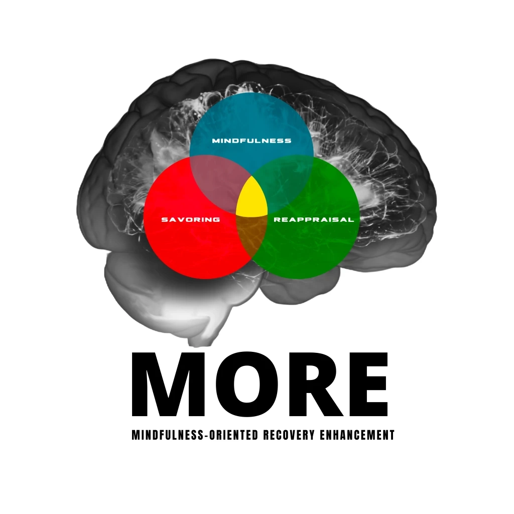 Mindfulness-Oriented Recovery Enhancement (MORE) is an evidence-based therapy, supported by more than 16 clinical trials and over $90 million in federal research grants (e.g., NIH, DOD), that unites innovative mindfulness, reappraisal, and savoring techniques — rooted in mindfulness meditation, “third wave” cognitive-behavioral therapy, and principles from positive psychology — into an integrative, unique, and sequenced mind-body treatment approach. Eric Garland, PhD, LCSW developed MORE by translating fundamental discoveries from cognitive and affective neuroscience into targeted therapeutic strategies that reduce addictive behavior, emotional distress, and chronic pain, while simultaneously increasing healthy pleasure, joy, and meaning in life. MORE has been shown to be nearly three times as effective as standard therapy for treating addiction and chronic pain.